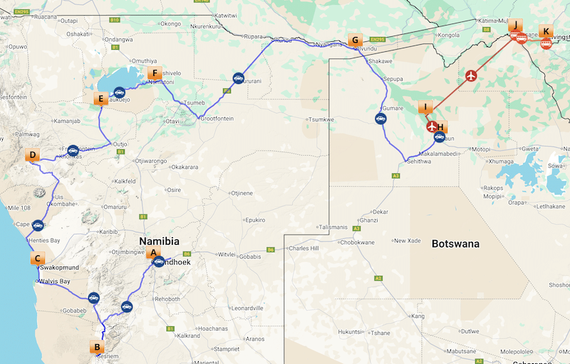 Embark on an unforgettable 16-day Chobe, Delta, Victoria Falls & Namibia adventure, a carefully crafted journey showcasing the very best of Southern Africa’s wild beauty. This Southern Africa Tour can be enjoyed either as an independent self-drive or as a fully private guided safari, offering the perfect balance of exploration, comfort, and freedom. Over two remarkable weeks, you’ll traverse shifting desert landscapes, wildlife-rich national parks, ancient cultural sites, dramatic coastlines, and the legendary Okavango Delta.