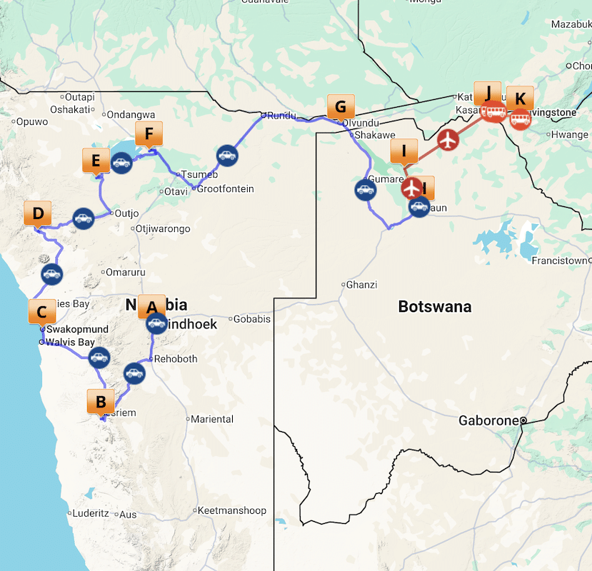 Embark on an extraordinary 16-day Southern Africa Tour through Namibia, Botswana, and Zimbabwe. An adventure that showcases the regions most iconic landscapes, wildlife, and cultural treasures. Your experience begins in Windhoek, where a warm welcome and seamless handover set the tone for a relaxed and well-supported self-drive safari. From here, you’ll travel through some of Namibia’s most dramatic desert scenery, including the towering dunes of Sossusvlei and the lunar landscapes surrounding the coastal town of Swakopmund. Whether you’re wandering through Dead Vlei at sunrise, exploring ancient San rock engravings in Twyfelfontein, or standing along the vast Skeleton Coast, every day reveals a new perspective of this breathtaking country.
